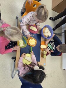 Passend zu unserem Sachunterrichtsthema „Lebensmittel am Bauernhof“ stellten wir unsere eigene Butter her. Mit dem Motto „Sieben Mal schütteln und weitergeben!“ ging es mit viel Spaß und Teamarbeit ans Werk. Nachdem die Butter fertig war, genossen wir eine wohlverdiente Jause mit frischem Striezel und Honig vom Imker. So schmeckt Lernen am besten!