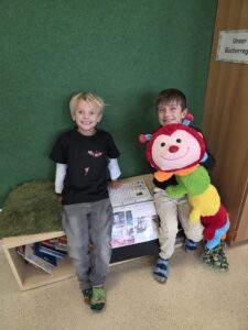 Leseraupe Rudi ist eingezogen und unterstützt die Kinder mit viel Begeisterung beim Lesenlernen.