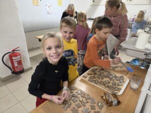 In der Waschbärklasse bereiteten wir uns im Dezember auf die Feiertage vor. Jeden Tag hörten wir die Geschichte von Weihnachtsdrache Spekulatius, öffneten unseren Adventkalender und bestaunten die Kerze an unserem Adventkranz. Ein großes Dankeschön an dieser Stelle an Frau Blahna. Wir verwandelten die Schulküche in eine Weihnachtsbäckerei und bereiteten uns auf das große Lichterfest vor.
