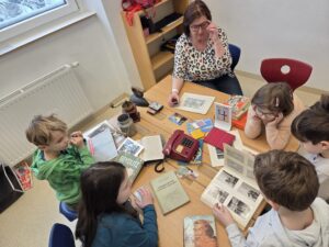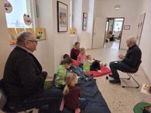 Im Sachunterricht beschäftigten wir uns mit dem Thema „Leben früher und heute“ . Vier Großeltern besuchten uns und erzählten von ihrer Kindheit, zeigten alte Fotos und Gegenstände und beantworteten unsere Fragen. So erfuhren wir, wie Schule, Autos und Telefone früher waren und was sich bis heute verändert hat.