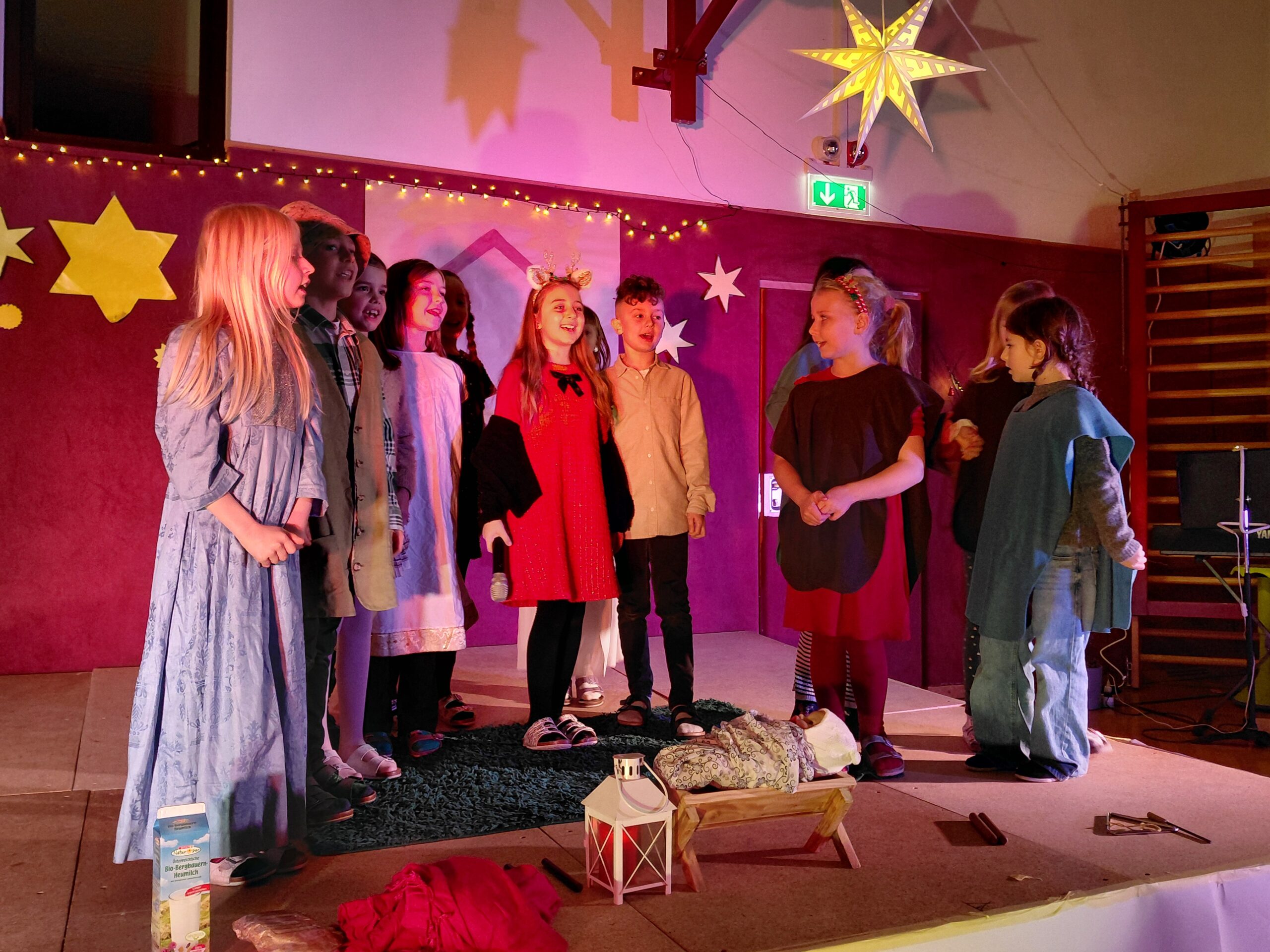 Der Höhepunkt im Dezember war unsere Weihnachtsfeier in der Schule, für die wir ein Krippenspiel geprobt haben. Die Aufregung und die Freude war sehr groß.