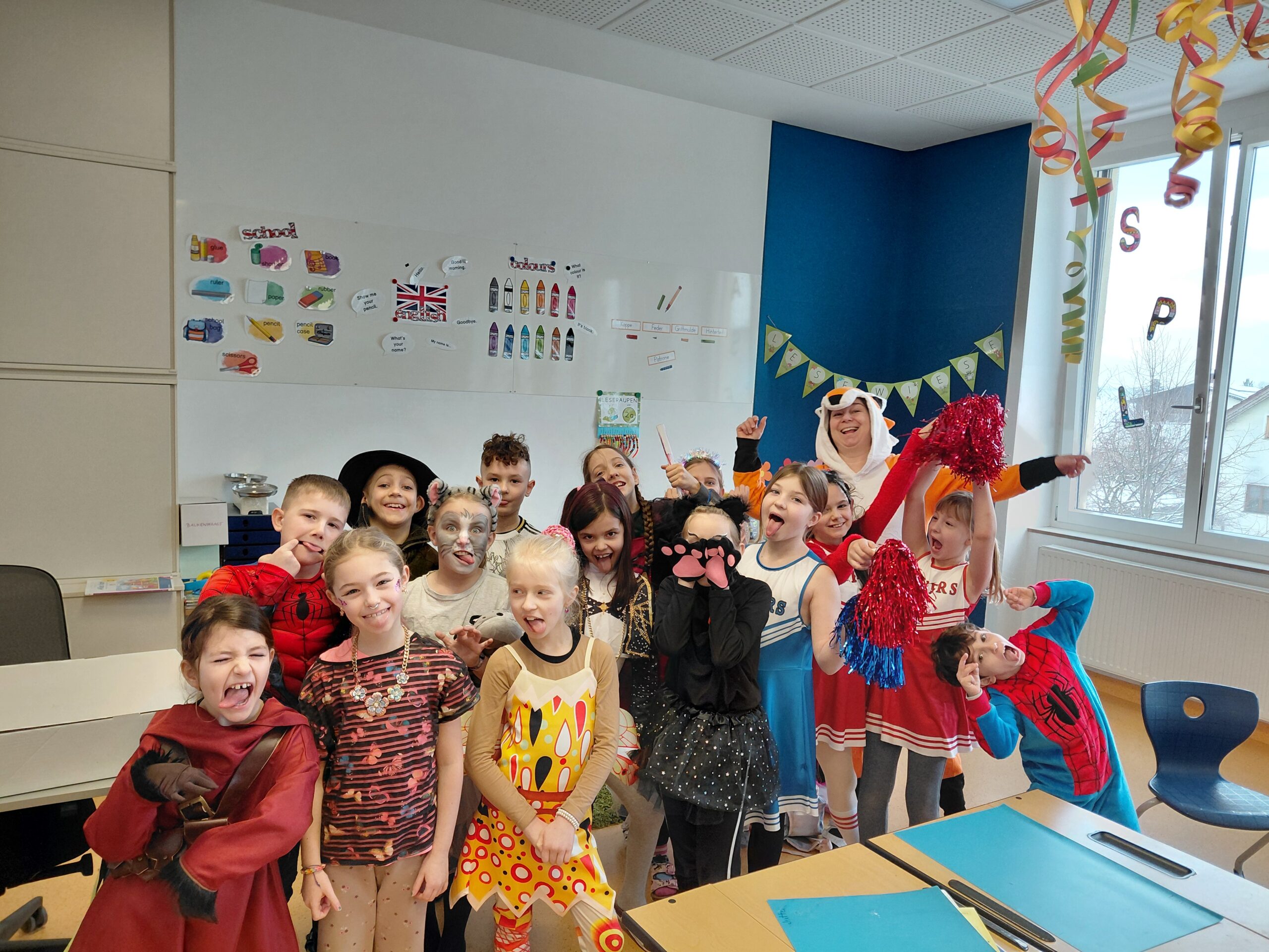 Zu Beginn durfte jedes Kind seine Verkleidung bei einer kleinen Modeschau präsentieren. Dann gab es den Sesseltanz und Luftballonspiele. Wie letztes Jahr am Faschingsdienstag machte die ganze Schule einen Umzug durch Orth. Dann ging’s ins Pflegeheim, wo wir den Bewohnern unseren Minions-Tanz vorführten. Wieder in der Schule zurück gab es noch Faschingsrätsel.