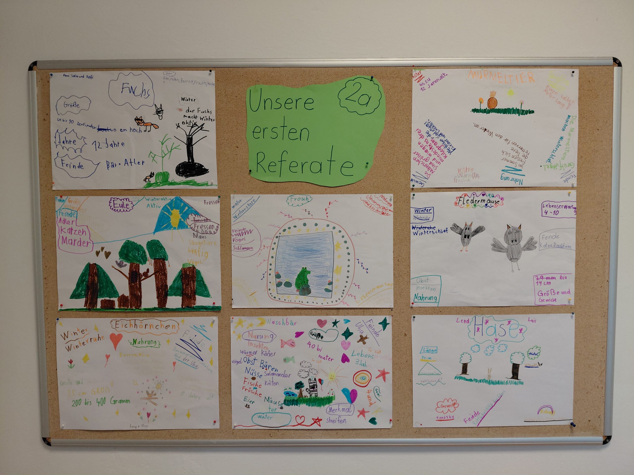 Nachdem wir ganz viel über darüber gelernt haben, was die Tiere denn so im Winter machen, durften sich immer 2 Kinder ein Tier aussuchen und ein Plakat mit allen wichtigen Dingen über das Tier gestalten. Danach wurde es auch gleich allen anderen präsentiert, also war das gleich unser erstes Mini-Referat.