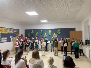 Beim diesjährigen Lichterfest stimmten wir gemeinsam das Lied „Weihnachten im Wald“ an und tauchten dabei in eine stimmungsvolle Winterwelt ein. Der Igel, das Reh, das Wildschwein und viele andere Waldbewohner erzählten, wie sie Vorräte sammeln, es sich gemütlich machen oder sich auf die ruhige Winterzeit freuen. Aufmerksame Zuschauerinnen und Zuschauer konnten dabei sogar einige Tiere in unserer Mitte entdecken.