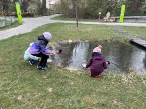 Alena Täubling besuchte uns wieder und verbrachte mit uns einen spannenden Vormittag rund um das Thema Wasser und Tümpeln. Dabei hatten wir Glück im Unglück: Da das Wetter leider sehr schlecht war, hatte sie ein Indoor-Programm im Schloss für uns vorbereitet. So durften wir eine nagelneue Ausstellung besuchen.