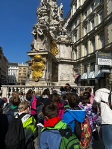 Gemeinsam mit der 3b waren wir vor den Osterferien in Wien unterwegs. Unser Ausflug begann mit einer Fahrt entlang der Ringstraße, bei der wir viele wichtige Gebäude bestaunen konnten. Anschließend stiegen wir bei der Oper aus und spazierten Richtung Albertina.