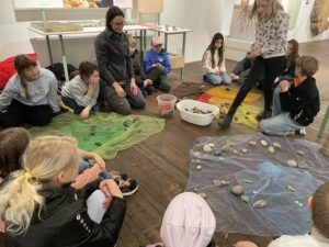 Alena Täubling besuchte uns wieder und verbrachte mit uns einen spannenden Vormittag rund um das Thema Wasser und Tümpeln. Dabei hatten wir Glück im Unglück: Da das Wetter leider sehr schlecht war, hatte sie ein Indoor-Programm im Schloss für uns vorbereitet. So durften wir eine nagelneue Ausstellung besuchen.