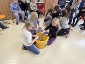 Beim Papierworkshop durften die Kinder ihr eigenes Papier herstellen