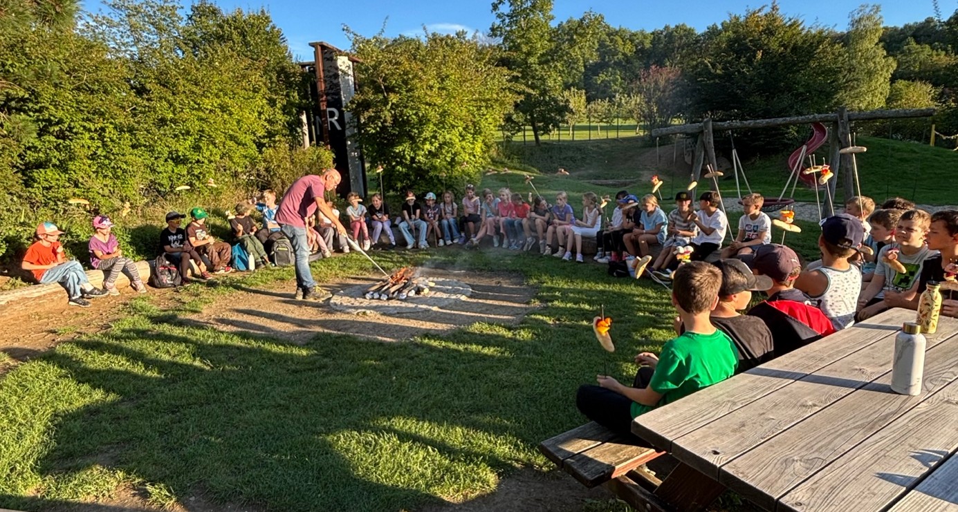 Als wir in Loosdorf ankamen, gingen wir gleich auf den Spielplatz. Dort bauten wir uns ein Geheimversteck im Wald. Danach gab es schon Mittagessen – Schnitzel mit Pommes. Auf dem Programm stand als Erstes eine Rätselrallye. Nach der Rätselrallye sammelten wir Pockerl für das Lagerfeuer am Abend.Nachdem alle fertig gegessen hatten, machten wir eine Nachtwanderung. Dabei lernten wir viel und hörten zwei spannende Sagen. Das war ein schöner erster Tag unserer gemeinsamen Projekttage.